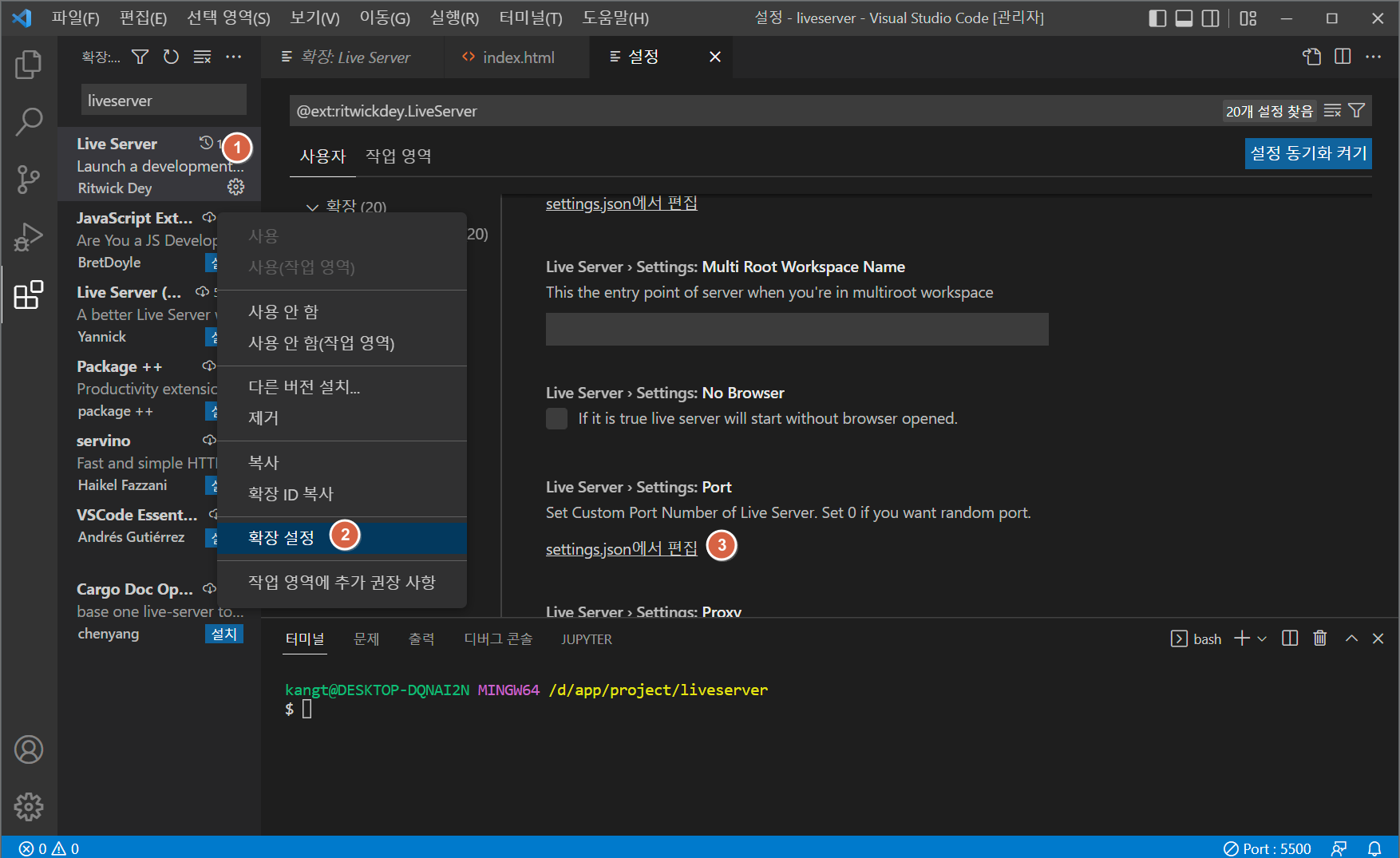 로컬 호스트로 간단한 정적웹사이트나 테스트 개발 사이트가 필요할때, vs extension중 live server 를 소개하고 간단한 기본사용법을 알아본다.