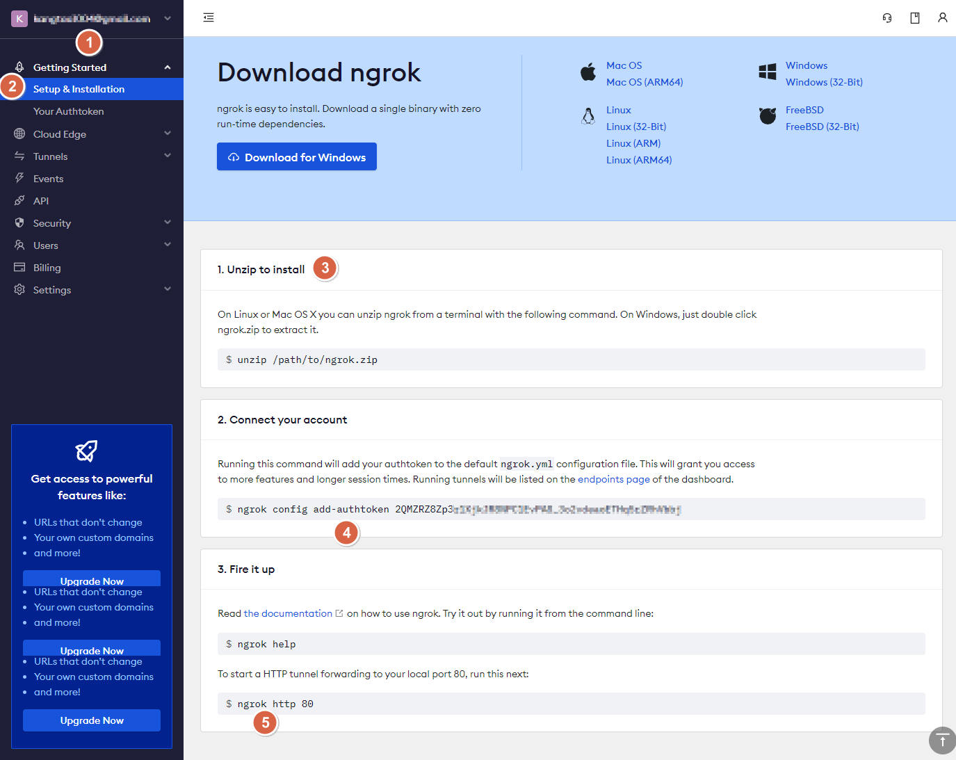 위 예시에서 보면 ngrok http 80이라고 보인다. command상에서 위처럼 치면 바로 뭔가 일이 일어나겠다.