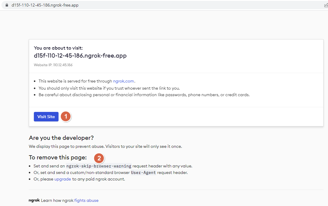 - 이 페이지는 돈 안내서 나오는 거라고 하는 것 같다. header에 ngrok-skip-browser-warning 을 넣어서 보내란다.