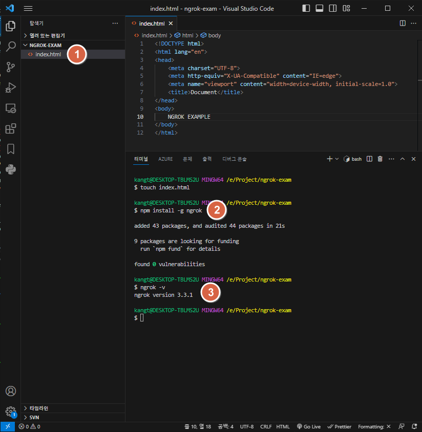 - 잘 설치되었는지 확인해본다. ngrok -v